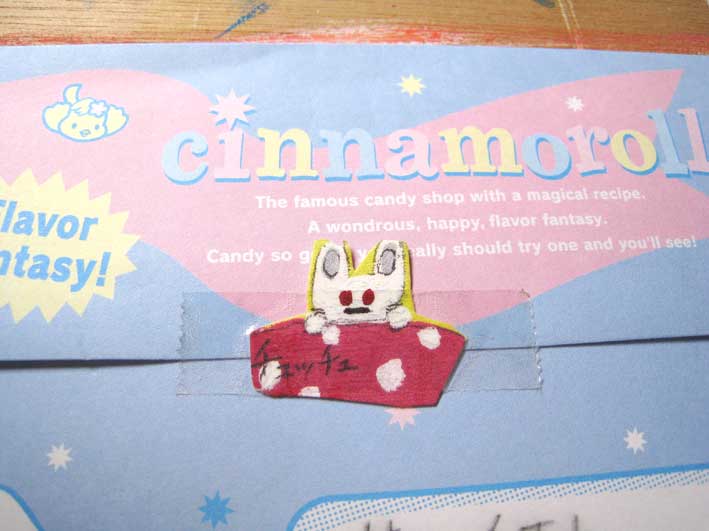 封筒の裏を見ると、個展DMのチュッチュの切り抜きが。