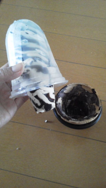 スプーンですくって食べるか迷ったけど、どうにかこうにか元のコーンの中に無理矢理戻して食べました。