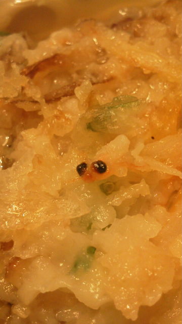 食べ進めて行くと、つぶらなエビの瞳がこちらを見ていました。