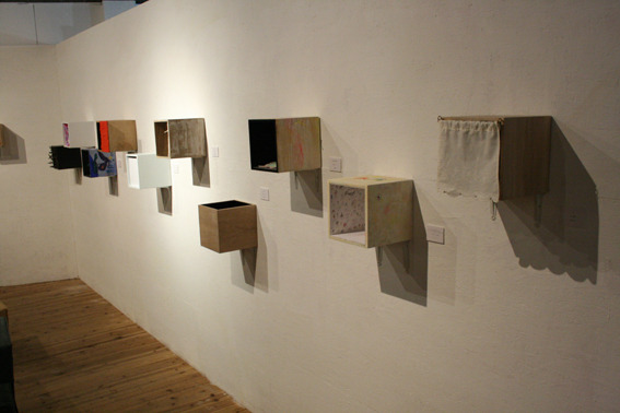 「空間」コンセプトに、24名の作家が200×200×200mmのボックスの中で作品を構成するグループ展。